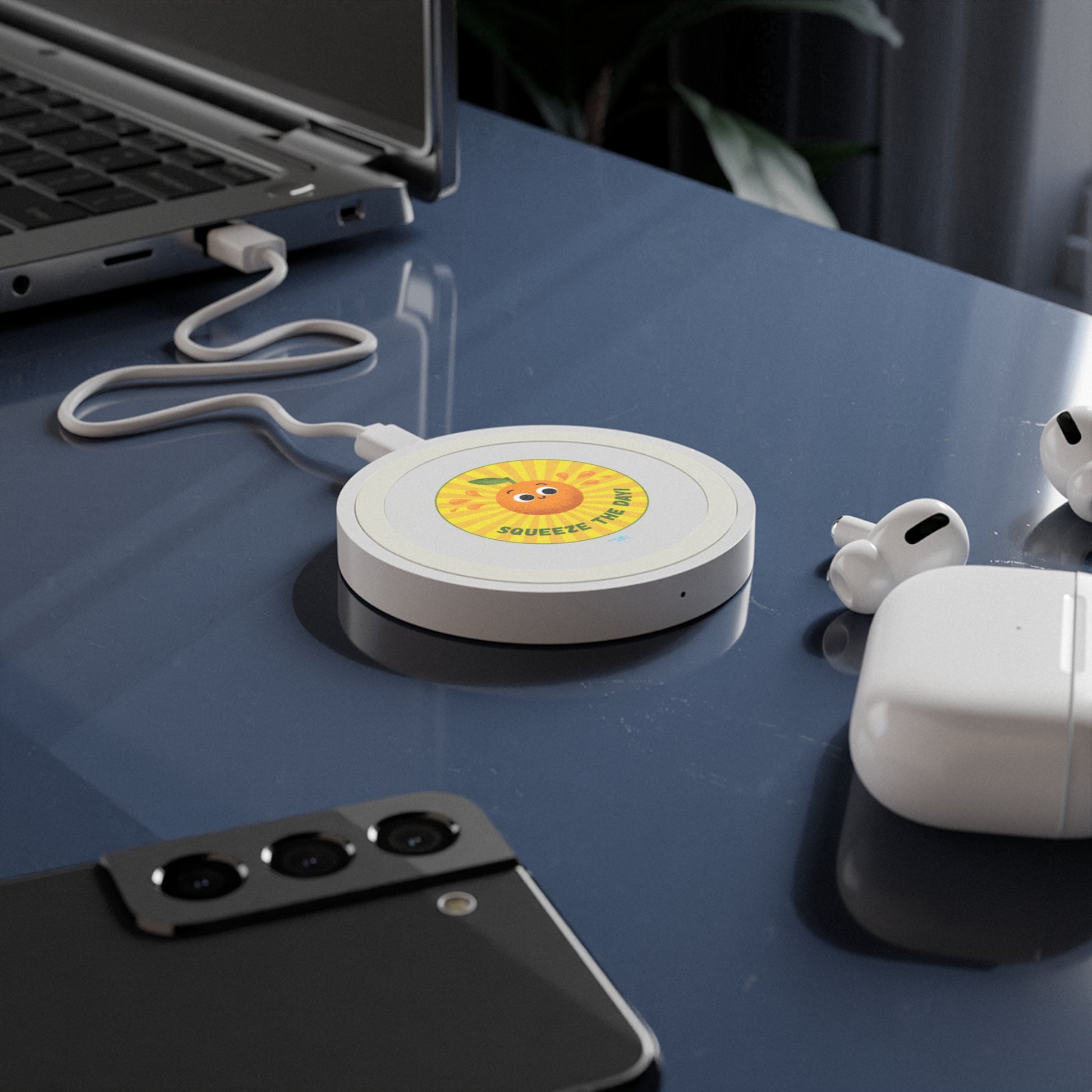 Cheerful Wireless Charging Pad - Squeeze the Day, Cute Desk Accessory, Great for Home or Office, Gift Idea for Friends, Bundle With Air Pod Case