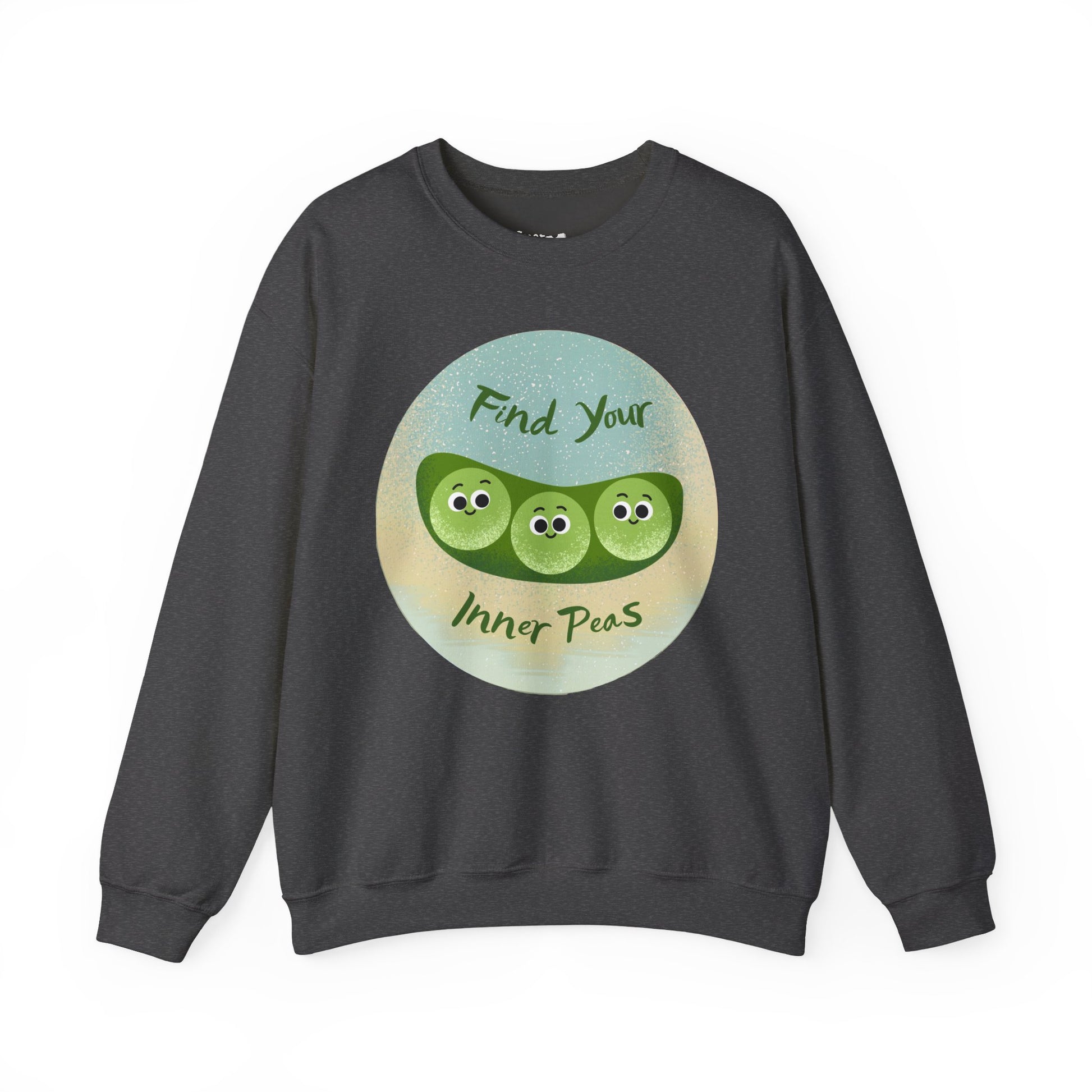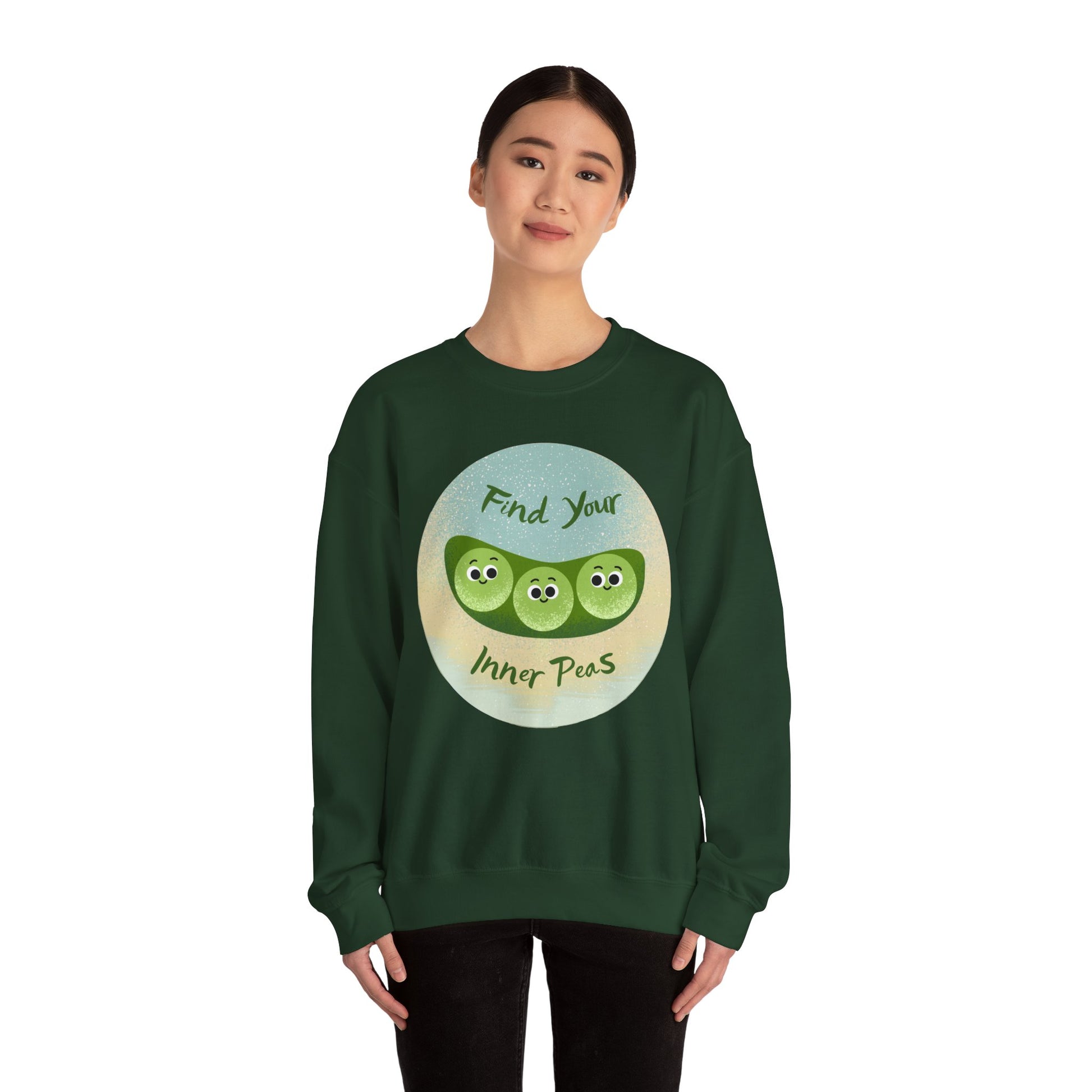 Embrace comfort and positivity with this Unisex Heavy Blend™ Crewneck Sweatshirt. Featuring a light-hearted "Find Your Inner Peas" graphic, this sweatshirt radiates a cheerful vibe, perfect for casual outings or cozy nights in. It's an excellent choice for anyone looking to uplift their spirits or spread a bit of joy. Ideal for relaxed gatherings, home lounging, and even fun gift-giving occasions like birthdays or holidays. Crafted for adults who appreciate both style and comfort, this sweatshirt makes a playful yet stylish addition to any wardrobe.