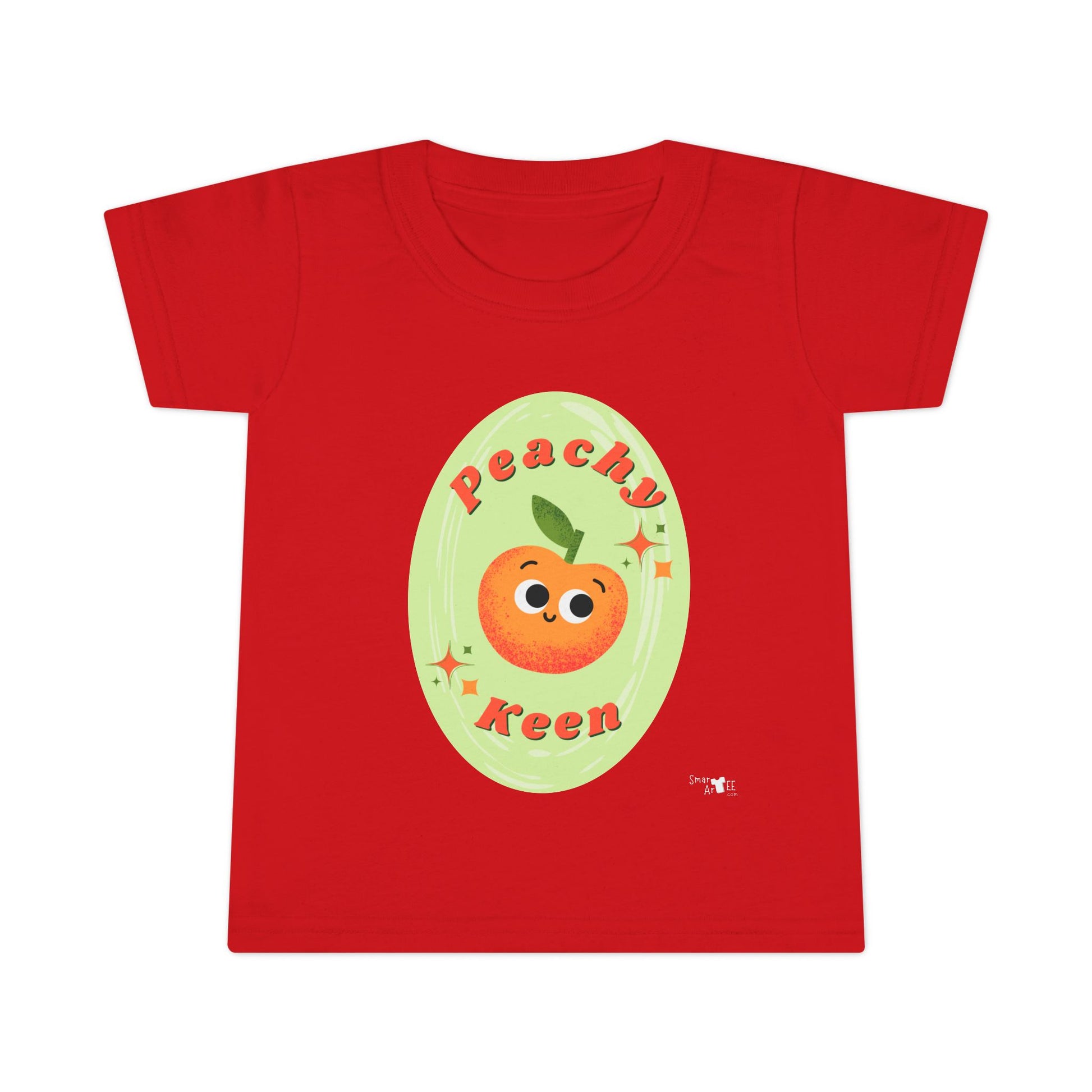 Introducing a delightful toddler t-shirt that exudes cheerful vibes and playful energy. This charming tee, adorned with an adorable peach graphic and 'Peachy Keen' text, is perfect for your little ones who love to express their fun-loving personalities. The light fabric ensures a comfortable fit, making it ideal for playdates, family outings, or just lounging at home. Designed for active toddlers, it fits seamlessly into their daily adventures and is perfect for birthdays, summer picnics, or any festive occasion. This t-shirt will appeal to parents looking to bring a splash of joy to their child's wardrobe, making it a sweet addition to any collection.
