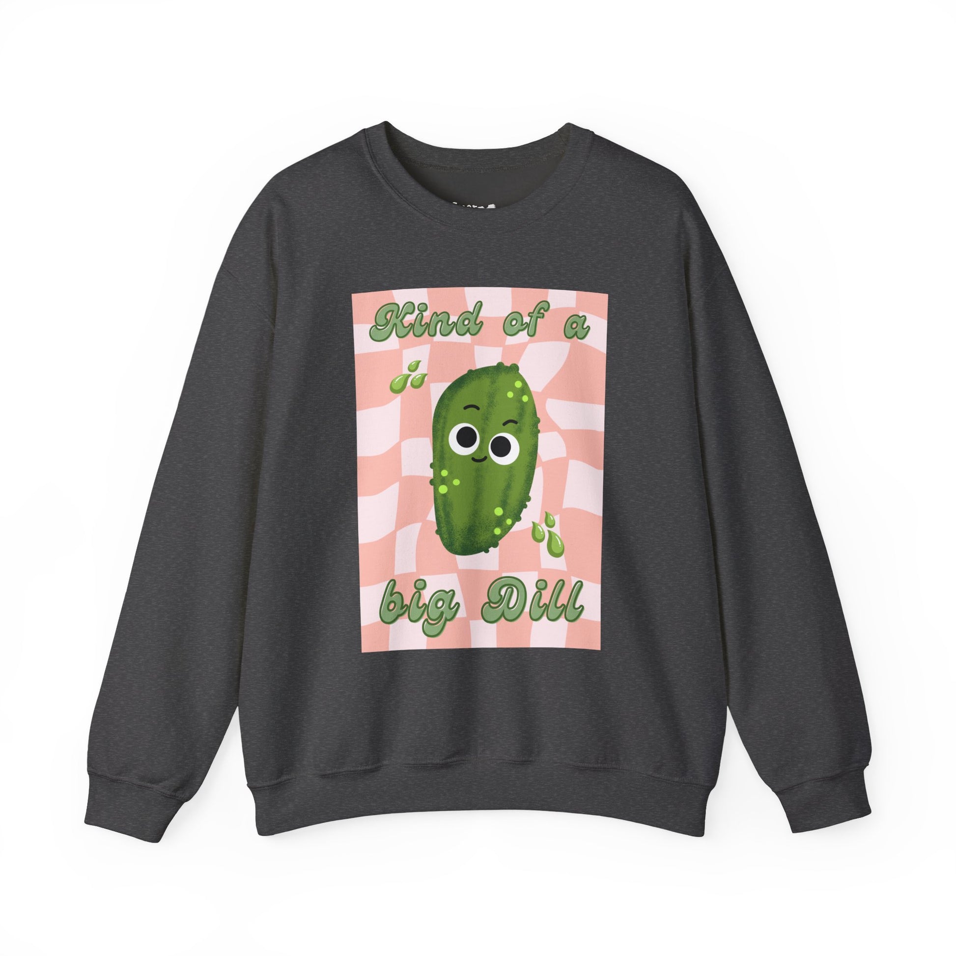 This Kind of a Big Dill Whimsical Pickle Pun Sweatshirt is perfect for pickle lovers with a sense of humor. It's cozy and durable, ideal for colder months. The classic fit and crew neckline offer a comfortable wearing experience, while the whimsical design adds a touch of fun to any outfit. This sweatshirt is great for casual wear or for gifting to someone who enjoys puns and quirky designs. Perfect for holidays like National Pickle Day or just to add some whimsy to everyday life.